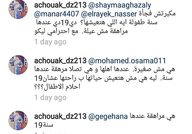 وقالت إحدى المتابعات: "هي ليست صغيرة، أي طفولة التي تعيشها، هي الآن 19عاما فلماذا لا تعيش حياتها بشكل طبيعي"؟
